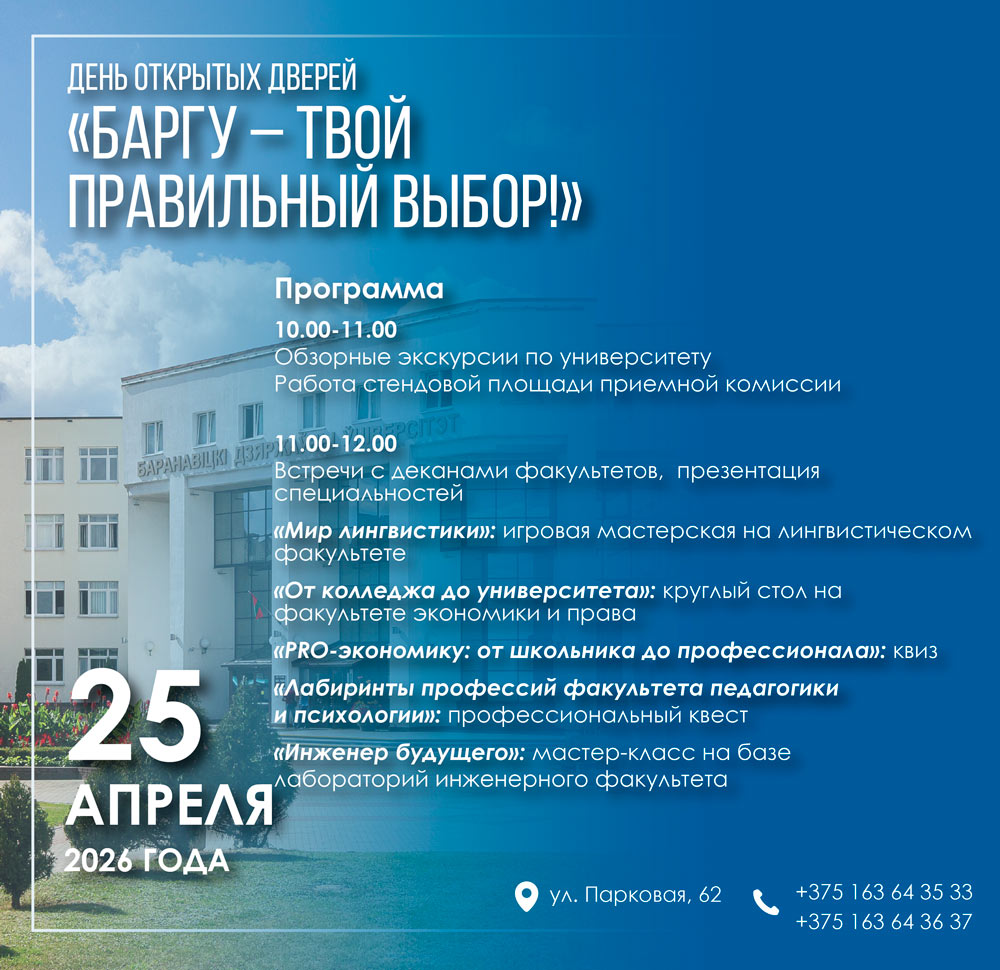 БарГУ обеспечивает подготовку высококвалифицированных специалистов в соответствии с требованиями инновационного уровня отраслей экономики и социальной сферы