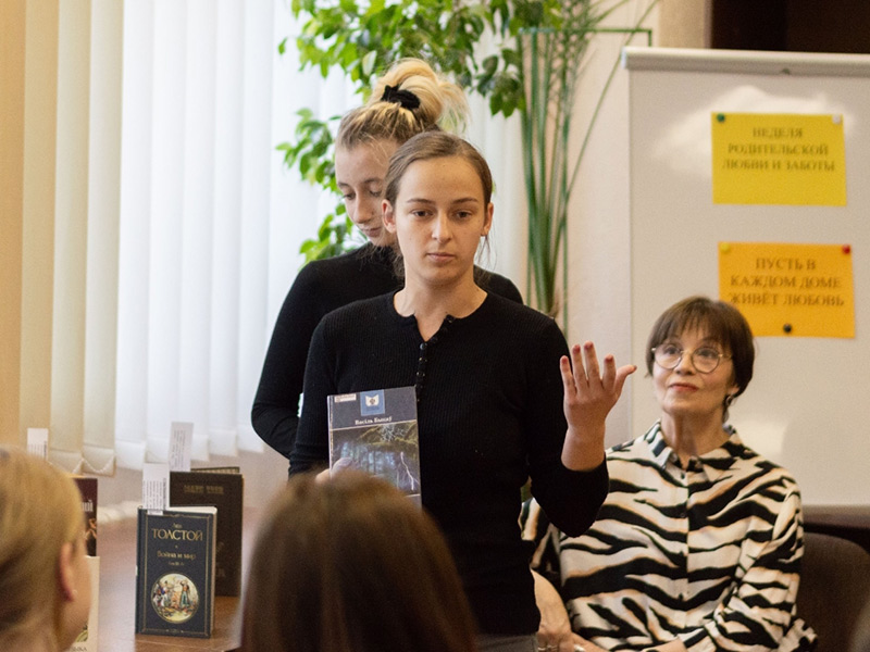 Студэнткі факультэта педагогікі і псіхалогіі Страпко Анастасія і Слінко Ангеліна падрыхтавалі агляд мастацкай літаратуры, у якой прасочваецца лінія бацькі як настаўніка ці антыпрымера. У завяршэнне сустрэчы госці і слухачы атрымалі музычны падарунак ад студэнта інжынернага факультэта Ягора Смірнова.