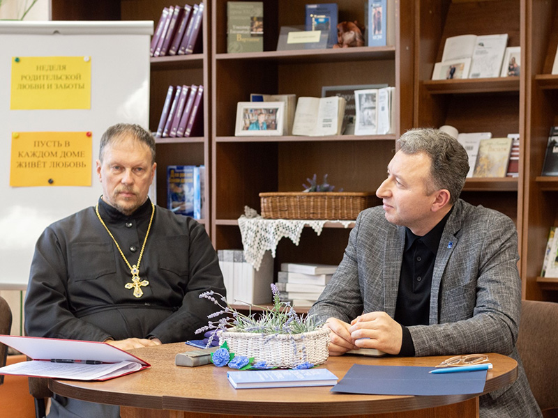 На встречу со студентами были приглашены Настоятель прихода храма Святого благоверного князя Александра Невского протоиерей Виталий Лозовский и заведующий кафедрой психологии и физического воспитания, кандидат философских наук, доцент Иценко Александр Григорьевич.