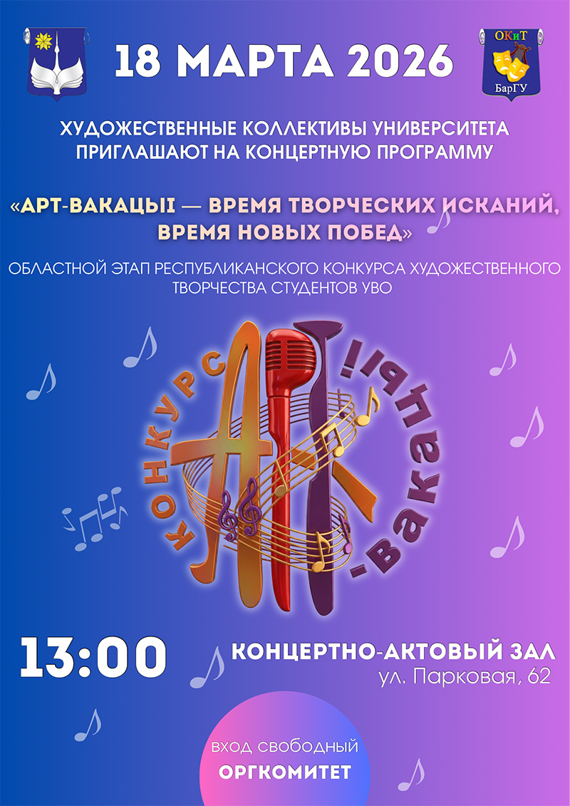 Концертная программа художественных коллективов БарГУ в рамках областного этапа Республиканского смотра-конкурса «Арт-вакацыі – 2026»