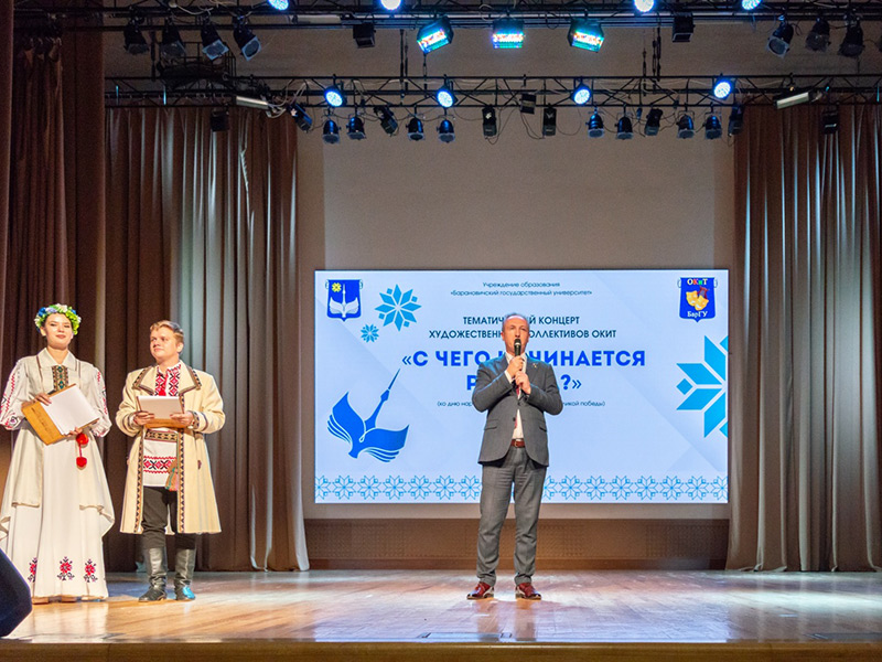 В концертно-актовом зале учреждения образования «Барановичский государственный университет» 17 сентября состоялась тематическая концертная программа художественных коллективов отдела культуры и творчества «С чего начинается Родина?», посвящённая Дню народного единства и 80-летию Великой Победы.