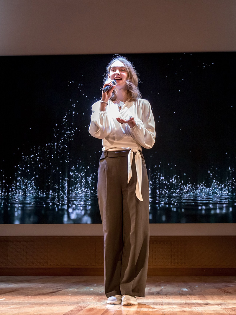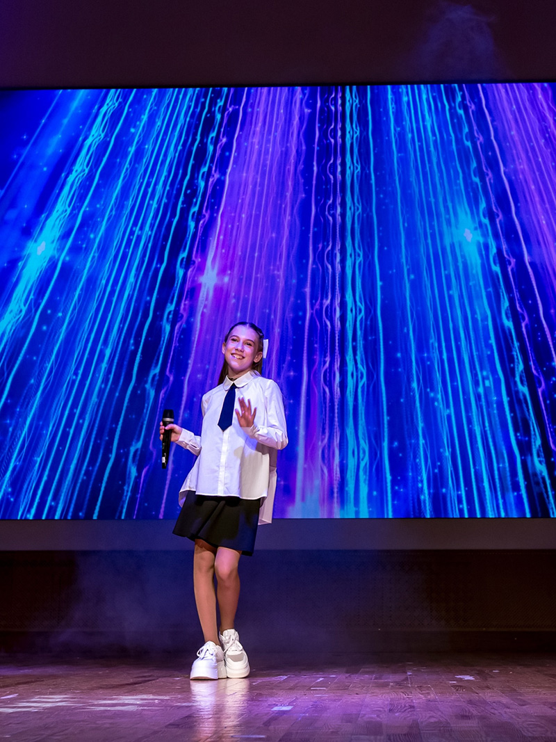 Мероприятие началось с пролога – поэтической композиции, посвященной 80-летию Великой Победы, в исполнении победителя городского этапа Республиканского конкурса «SUPER ПРОФИ-2025» Карины Лубешко. Яркости выступлению добавили участники группы современного танца «Stand out» и юная актриса Серафима Коржак.