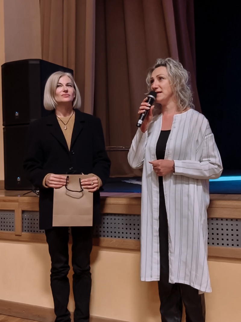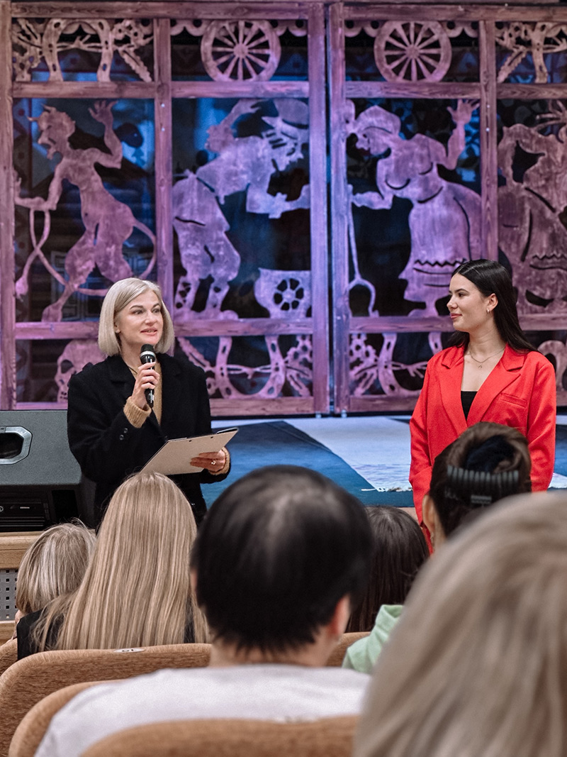 По традиции университета, проректор вручила представителям театра памятные сувениры, изготовленные в белорусском национальном стиле.