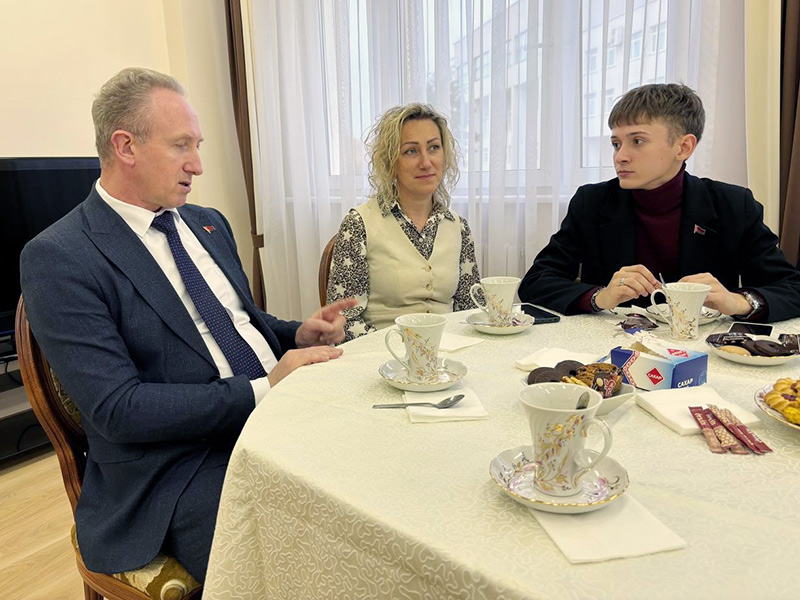 21 октября 2025 года в учреждении образования «Барановичский государственный университет» состоялась неформальная встреча администрации вуза со студенческим активом. Мероприятие прошло в формате открытого диалога «Разговор за чашкой чая» с ректором университета А.Н.Унсовичем и проректором по идеологической и воспитательной раоте И.С.Булыга, что создало теплую и доверительную атмосферу для общения.