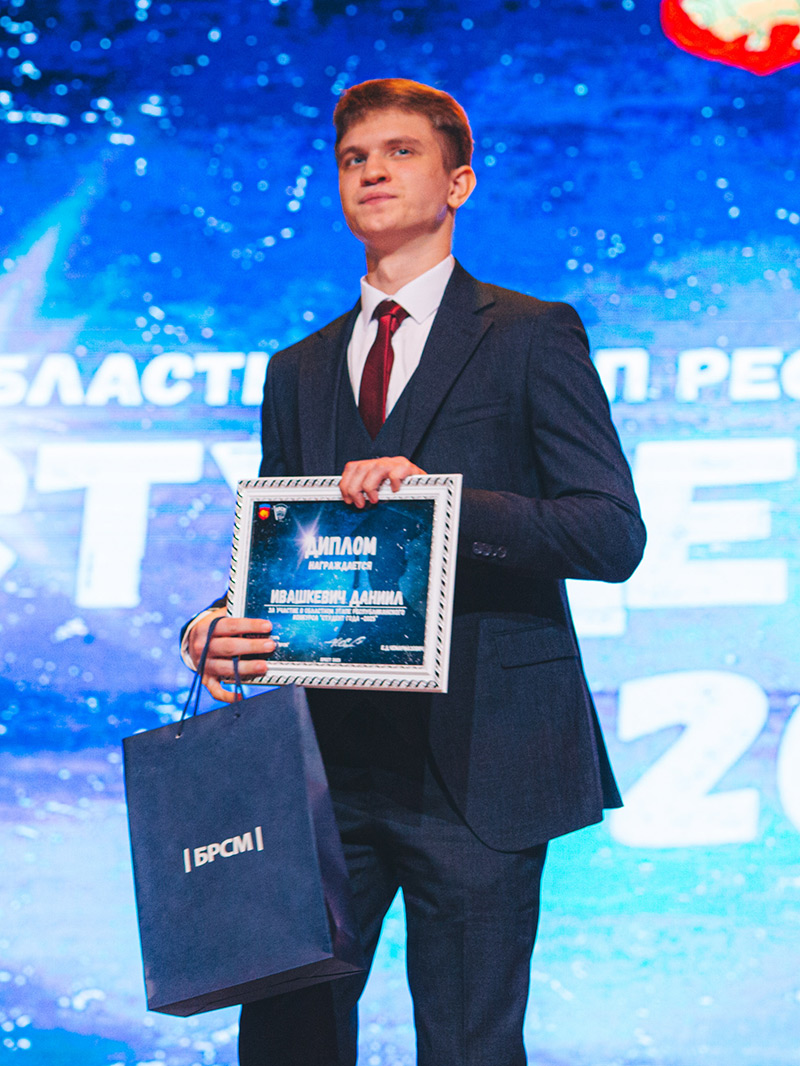 В число финалистов вошёл Ивашкевич Даниил, студент Барановичского государственного университета, участник народного театра миниатюр «Софит» отдела культуры и творчества БарГУ. Поздравляем Даниила с ярким выступлением и уверенным попаданием в число лучших студентов области!