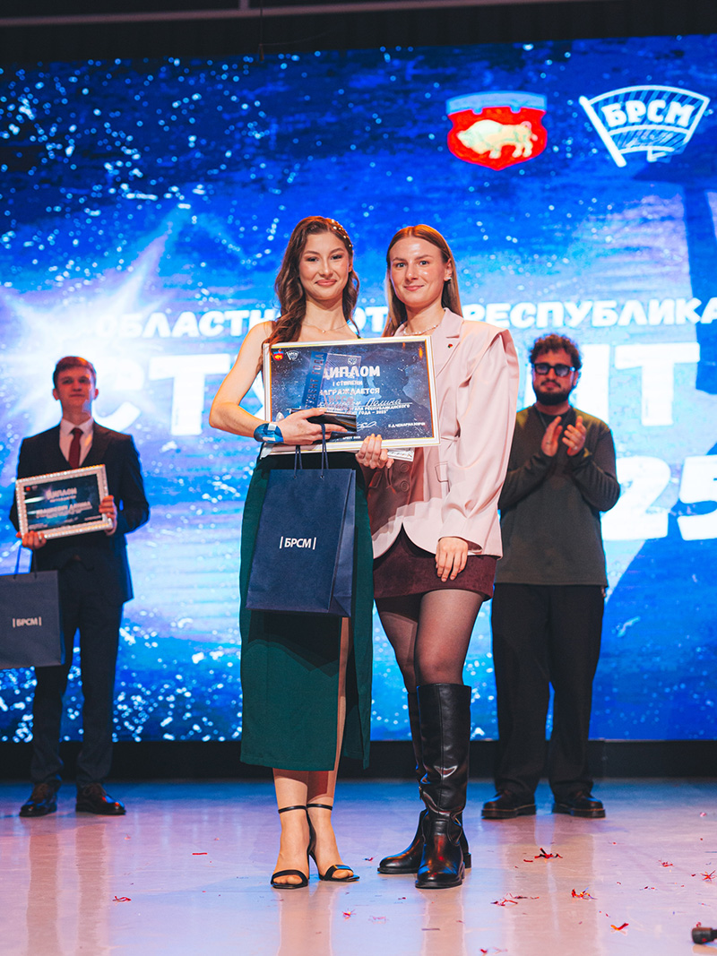 Титула «Студент года Брестской области — 2025» удостоена Максимович Полина, студентка лингвистического факультета Барановичского государственного университета, участница народного театра моды «Свита» отдела культуры и творчества БарГУ. Полина блестяще проявила себя на всех этапах, продемонстрировав незаурядный интеллект, артистизм и лидерские качества.