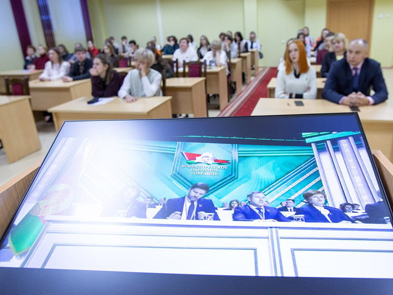 Прямая трансляция позволила всему университетскому сообществу стать частью важнейшего общественно-политического события, следить за выступлениями и дискуссиями, определяющими курс развития Республики Беларусь на ближайшую пятилетку.