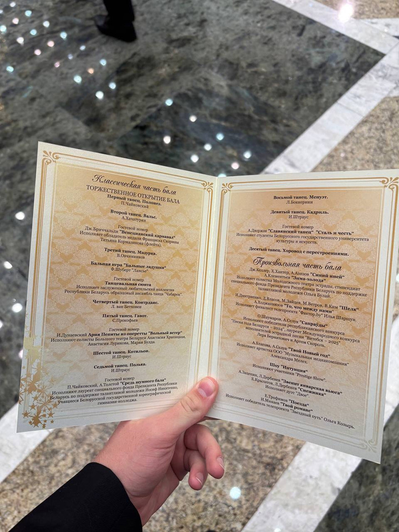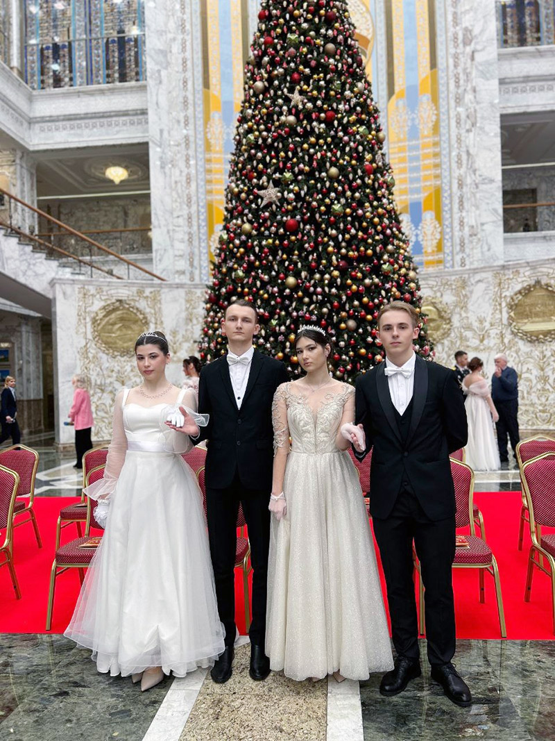 В преддверии 2026 года во Дворце Независимости прошёл традиционный новогодний бал, собравший самых талантливых и успешных представителей молодёжи страны. Среди участников этого изысканного праздника были и студенты Барановичского государственного университета — Александра Сухецкая, Максим Алексейчик, Ольга Кулешова и Алексей Пахольчик.