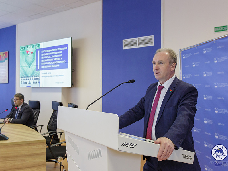 15 января 2026 года в учреждении образования «Барановичский государственный университет» состоялся Единый день информирования. Мероприятие собрало работников университета для обсуждения ключевых вопросов государственной политики и социально-экономического развития страны. Традиционно такие встречи в БарГУ проходят каждый третий четверг месяца.