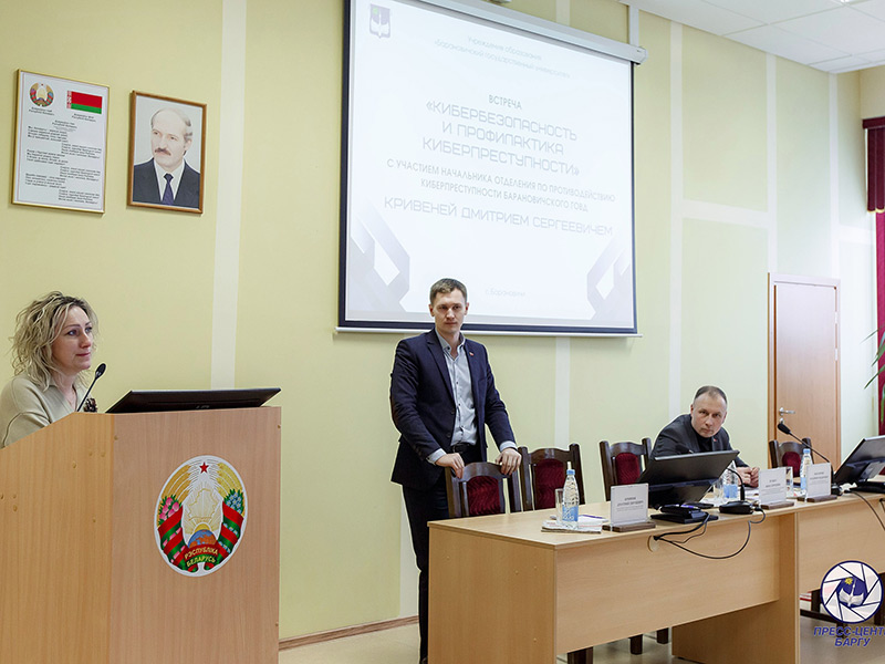 Основным докладчиком встречи выступил начальник отделения по противодействию киберпреступности Барановичского ГОВД Кривеня Дмитрий Сергеевич. В своём выступлении он подробно осветил современные схемы интернет-мошенничества, механизмы защиты персональных данных и финансовых средств, а также дал практические рекомендации по безопасному поведению в цифровой среде.