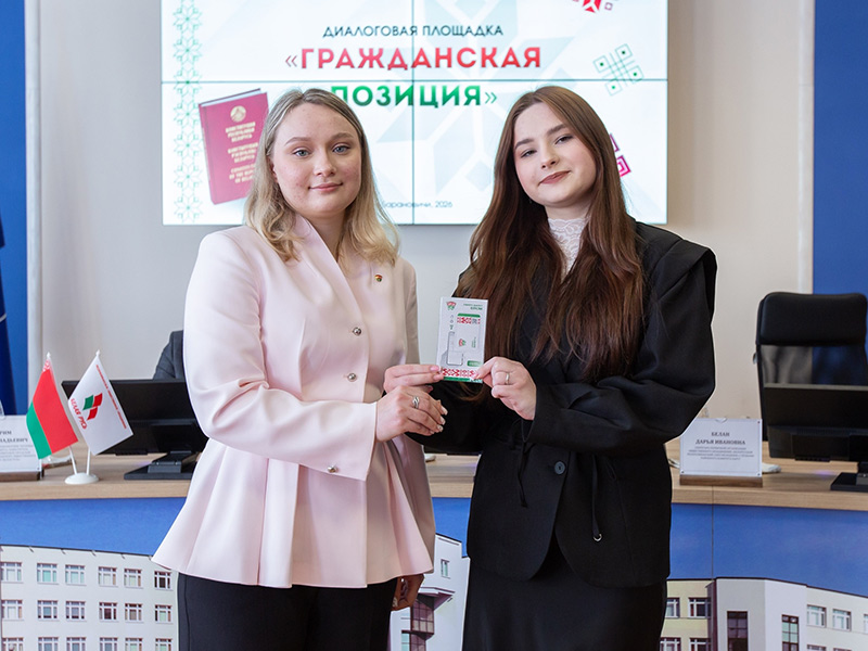 Также в торжественной обстановке секретарь первичной организации ОО «БРСМ» с правами районного комитета БарГУ Белан Дарья Ивановна обратилась к собравшимся и вручила молодежные билеты новым членам Белорусского республиканского союза молодежи, пожелав им активной жизненной позиции и успехов в общественной деятельности.