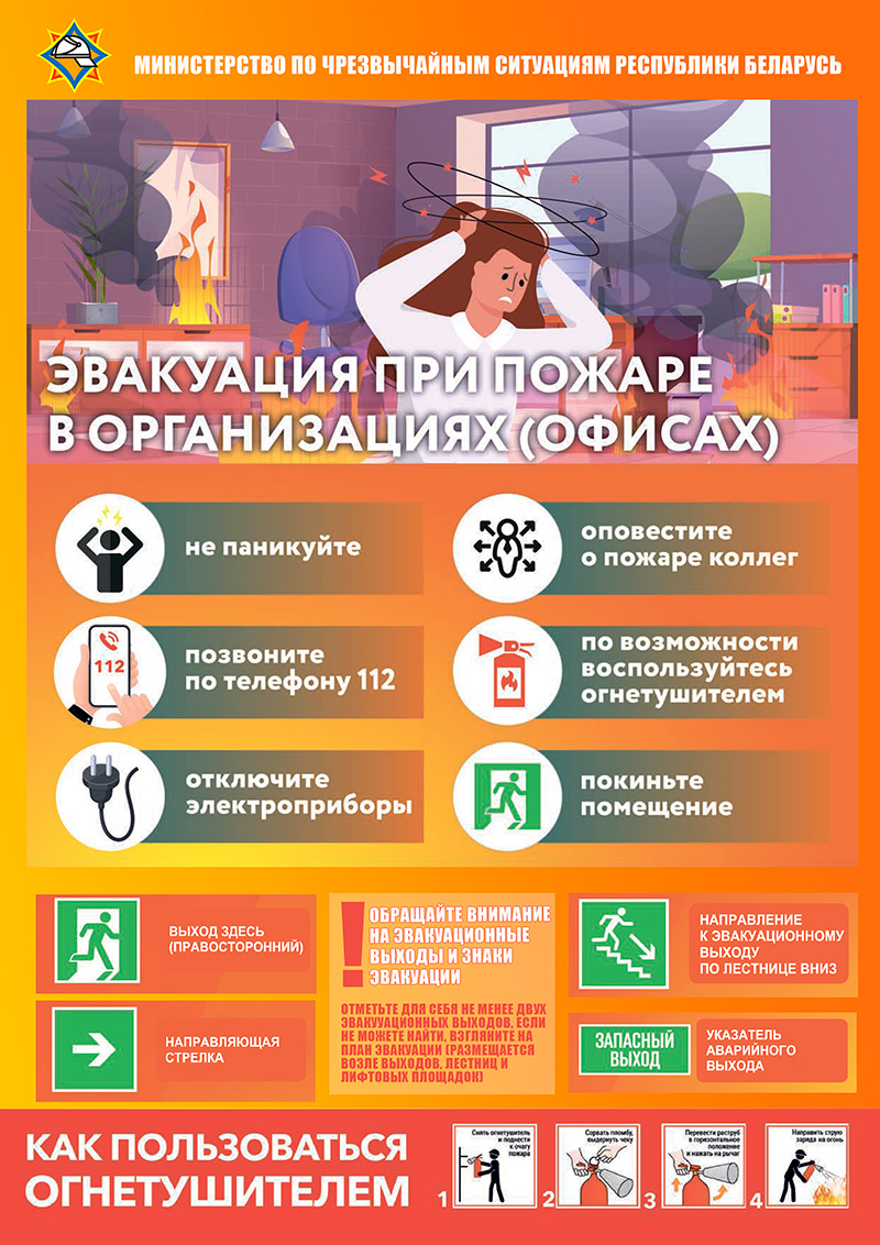 У нас в республике пожаров с трагическими последствиями не допущено, тем не менее вопрос правильной эвакуации людей из зданий при пожаре (как по месту работы, так и в общественных местах, в которых бывает каждый из нас) является актуальным.