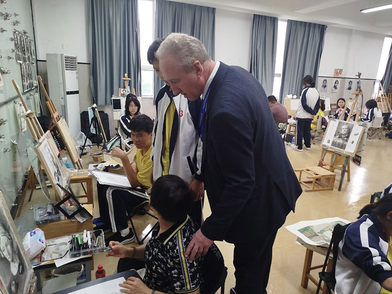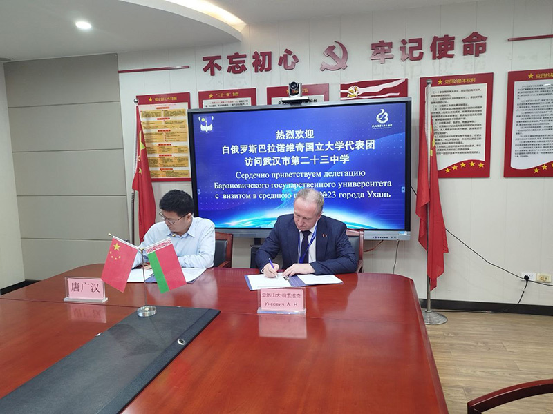 Делегация учреждения образования «Барановичский государственный университет» в составе ректора, кандидата педагогических наук, доцента Александра Николаевича Унсовича и проректора по идеологической и воспитательной работе Инны Сергеевны Булыги продолжает свою рабочую программу в Китайской Народной Республике. Новым этапом визита стало знакомство с системой среднего образования провинции Хубэй и установление прямых контактов с ведущими учебными заведениями.