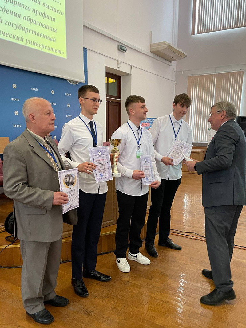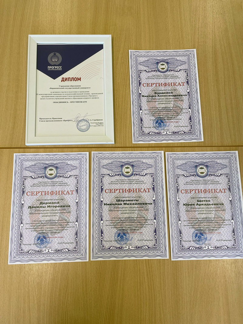 Команда БарГУ в составе студентов инженерного факультета специальности «Техническое обеспечение производства сельскохозяйственной продукции» Николая Шараметы, Юрия Щетко и Данилы Дермана продемонстрировала глубокие теоретические знания и отличные практические компетенции. Эксперты высоко оценили домашнее задание – презентацию, раскрывающую учебный процесс, материально-техническую базу кафедры и освоение техники предприятий, входящих в Союз промышленников «Прогресс». По итогам состязаний студенты БарГУ разделили первое командное место с представителями РГАУ-МСХА им. К.А. Тимирязева и получили кубок победителей – весомый символ признания их таланта, трудолюбия и профессиональной зрелости.