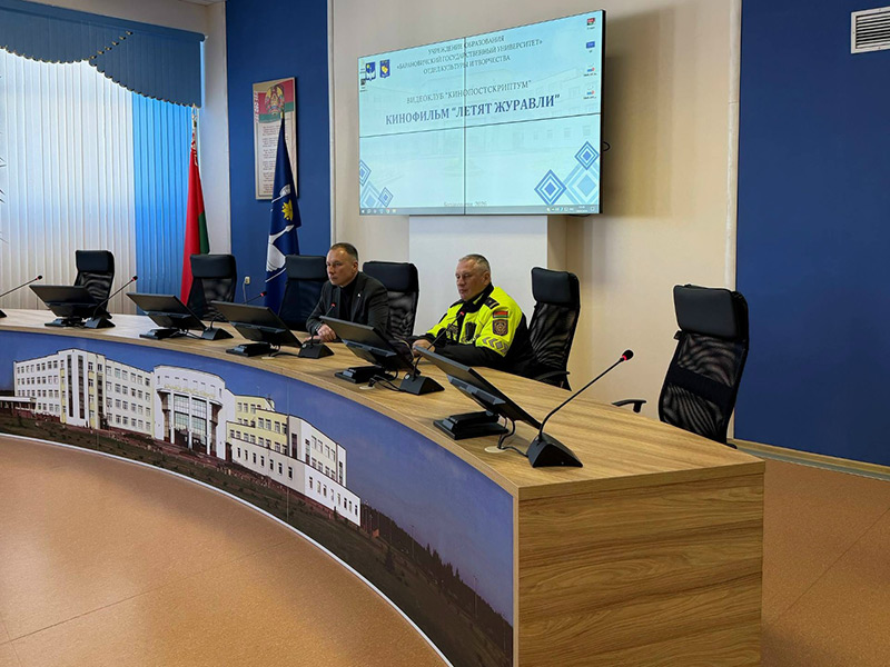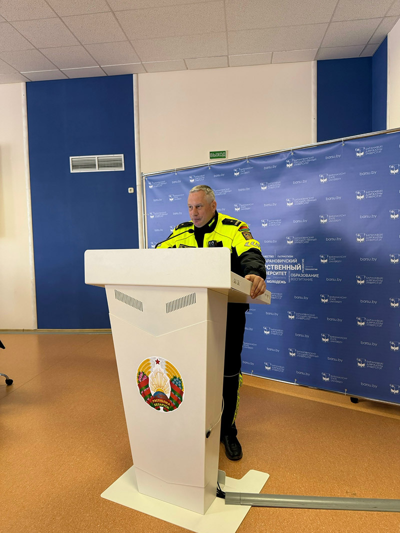 На встрече присутствовал проректор университета Максимчик Владимир Фёдорович. Перед началом кинопоказа с приветственным словом и напоминанием о правилах дорожного движения к студентам обратился старший инспектор ДПС ГАИ Барановичского ГОВД, майор милиции Серко Владимир Александрович .
