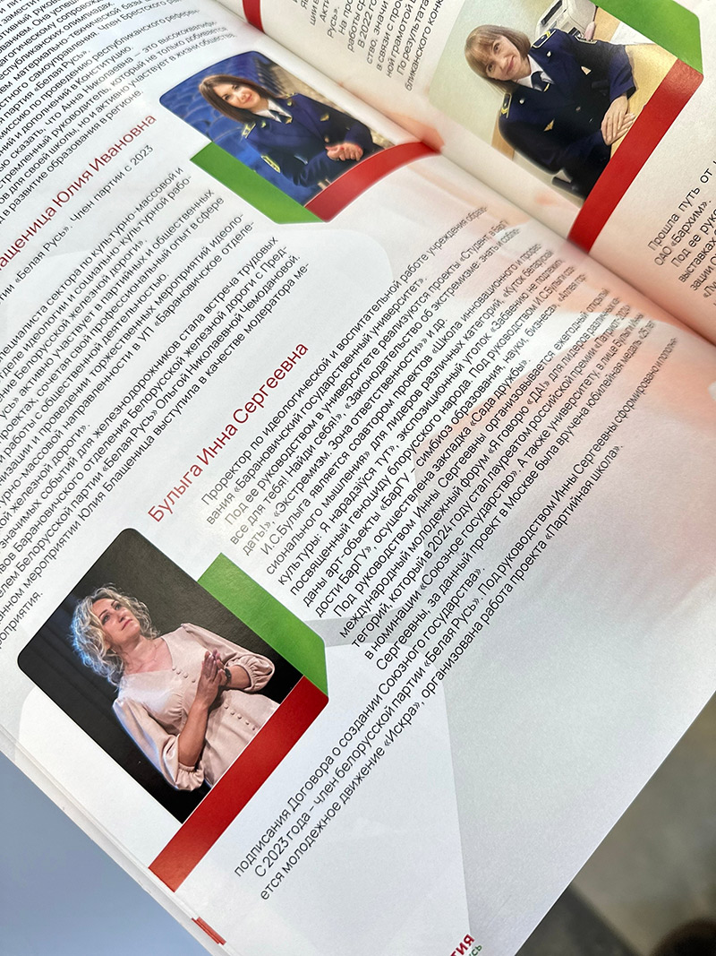 Буклет «Беларусачка» включает статьи о каждой из приглашённых женщин, внёсших значительный вклад в развитие города и общества. Особо важно отметить, что в издании опубликована статья об Инне Сергеевне Булыге, что стало признанием её заслуг в сфере образования, воспитания молодёжи и общественной деятельности.