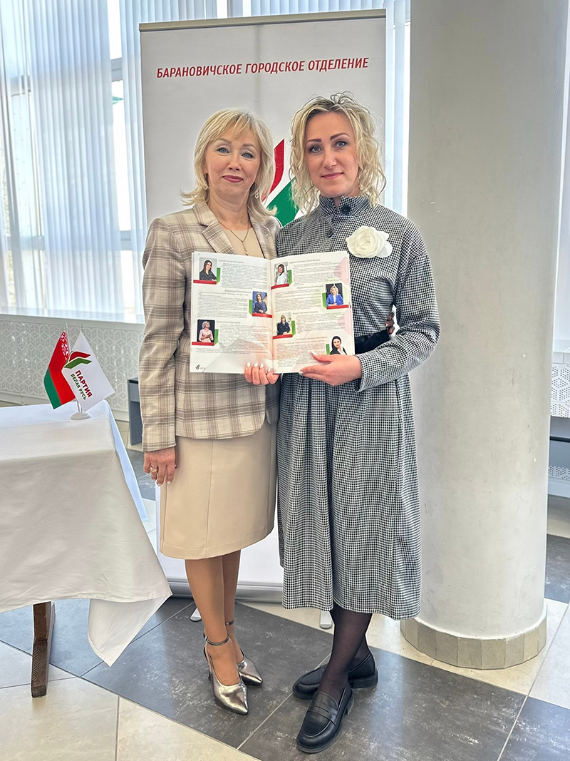 С приветственным словом к участницам торжества обратилась Соловей Елена Сергеевна, председатель Барановичского городского отделения Брестской области партии «Белая Русь». Она поздравила присутствующих с изданием буклета, подчеркнув его значение как дани уважения и признательности белорусским женщинам – труженицам, матерям, хранительницам семейных традиций.