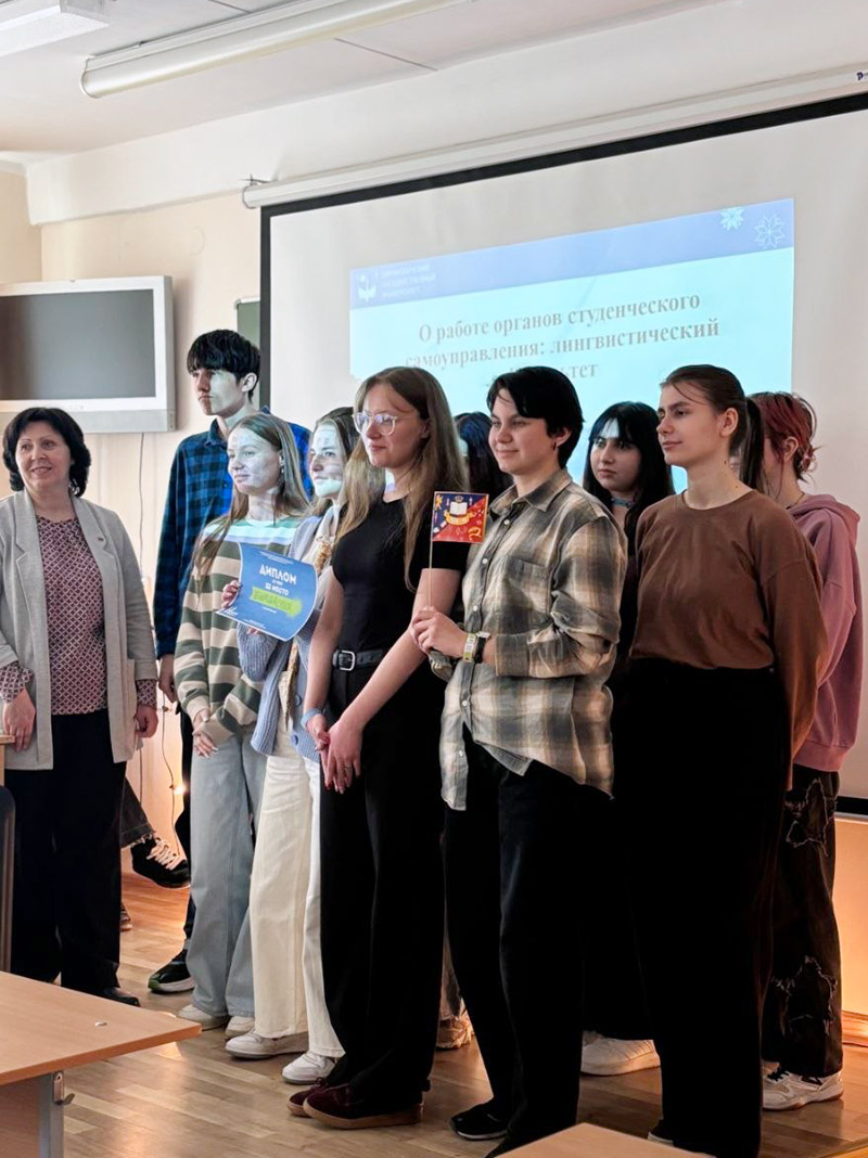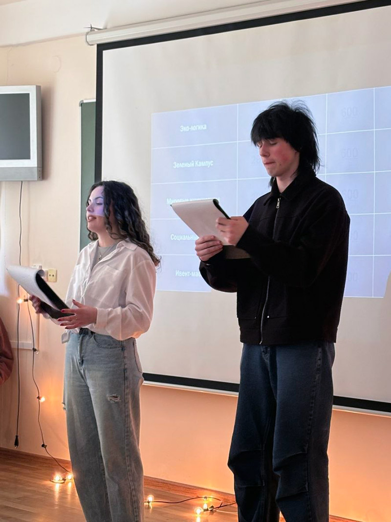 Затем участники диалоговой площадки ознакомились с результатами работы органов студенческого самоуправления лингвистического факультета за прошедший период 2025/2026 учебного года. В продолжение состоялась диалоговая площадка с участием студентов I–V курсов, которые поделились опытом участия в общественной деятельности на факультете и в университете. Далее команды посоревновались в интеллектуальном турнире «Своя игра», посвященном теме защиты окружающей среды и формированию социальной ответственности молодых людей.