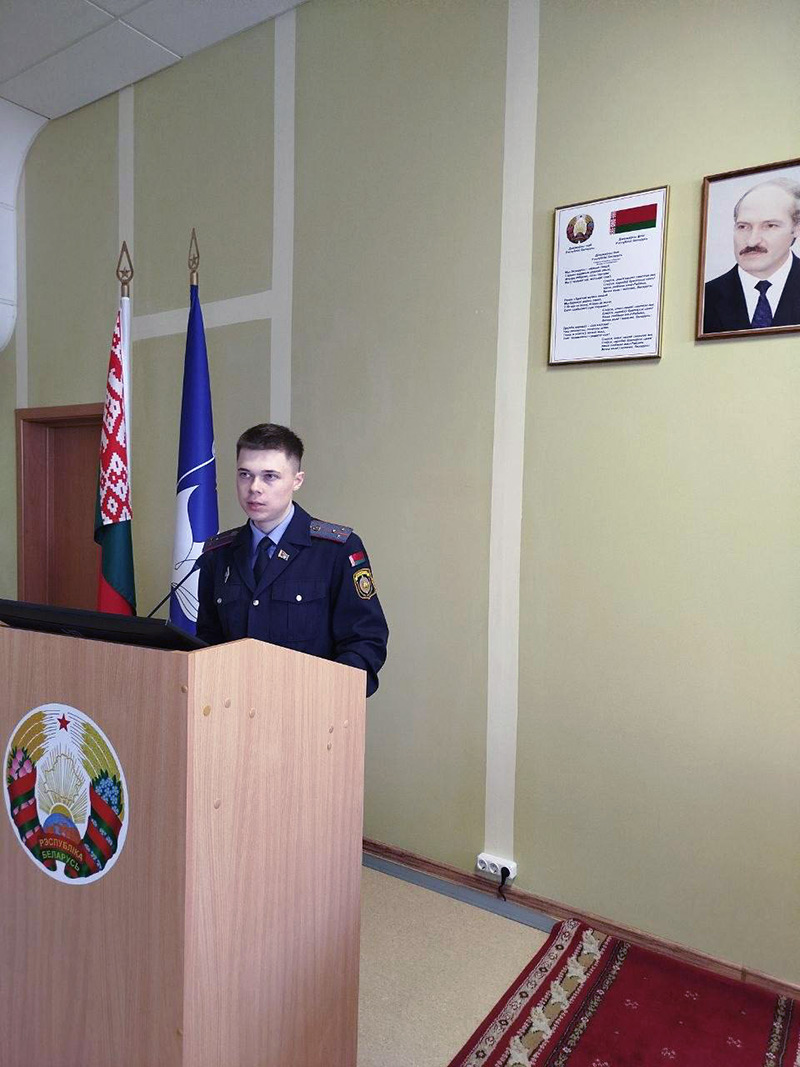 24 апреля 2026 года в учреждении образования «Барановичский государственный университет» состоялась встреча работников и студентов с представителем правоохранительных органов. С актуальной тематикой современности выступил оперуполномоченный отделения по противодействию киберпреступности Барановичского ГОВД, старший лейтенант милиции Доменикан Александр Александрович.