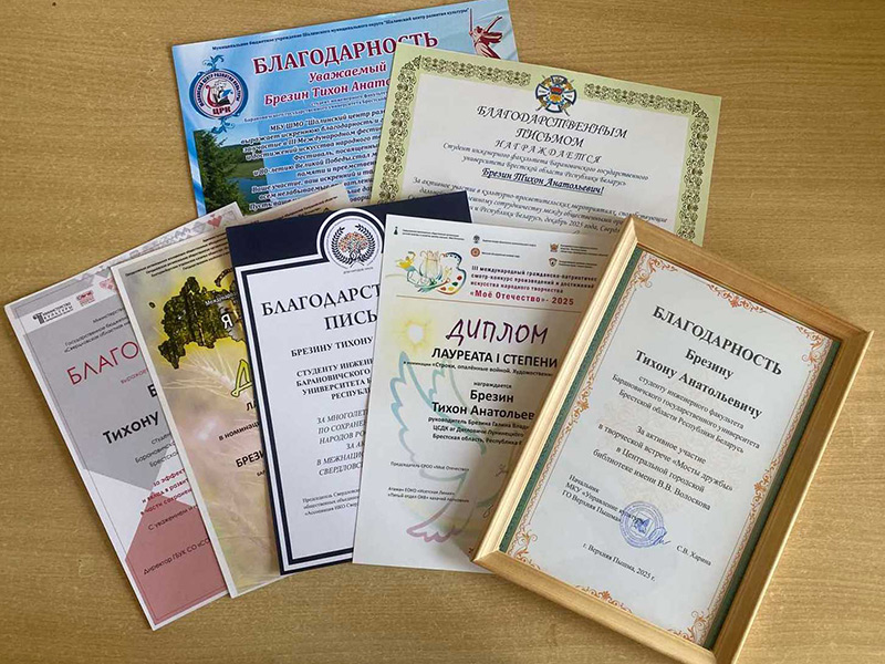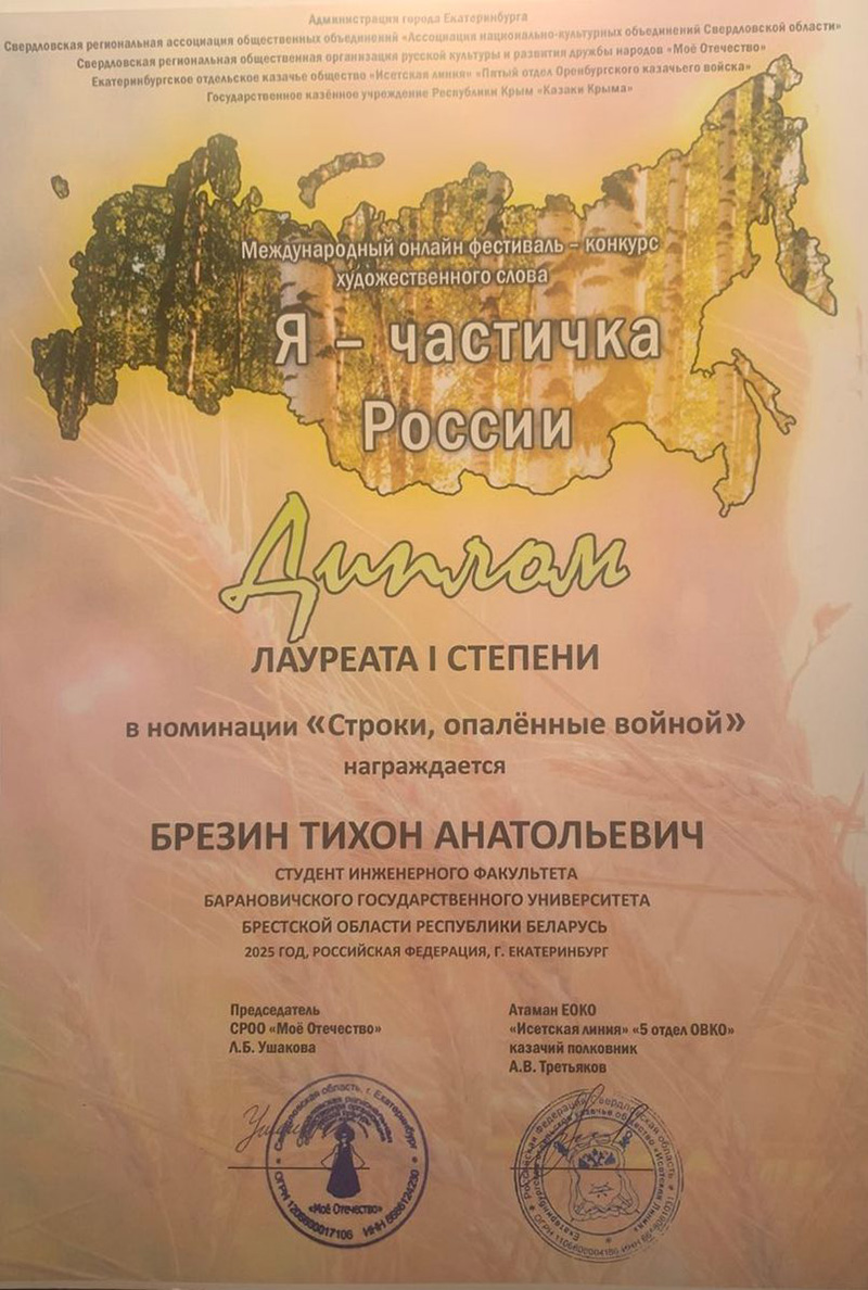 15.12.2025 Студент инженерного факультета Барановичского государственного университета Брезин Тихон достойно представил Беларусь на международных фестивалях в России